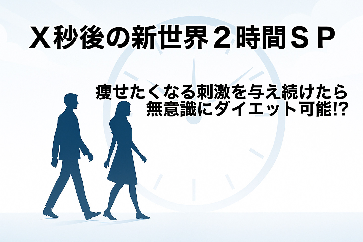このページでは『X秒後の新世界 2時間SP 痩せたくなる刺激を与え続けたら無意識にダイエット可能!?(2025年12月16日放送)』の内容を分かりやすくまとめています。
