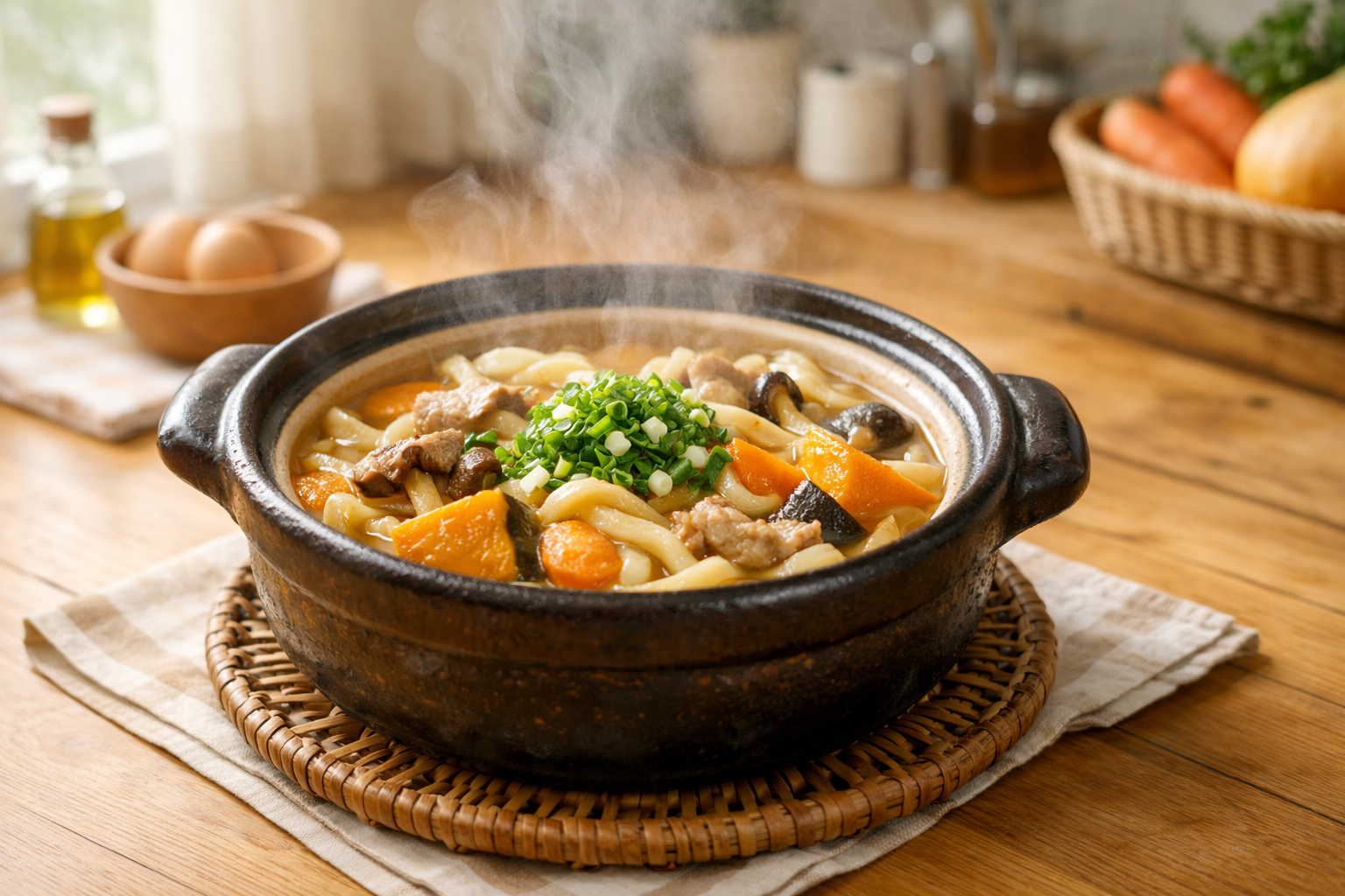 どの根菜も、ほうとう風うどん の基本を崩すことなく、鍋の雰囲気を少しずつ変えてくれます。冷蔵庫の中を見ながら選ぶことで、その日の体調や気分に合った一杯に近づけやすくなります。