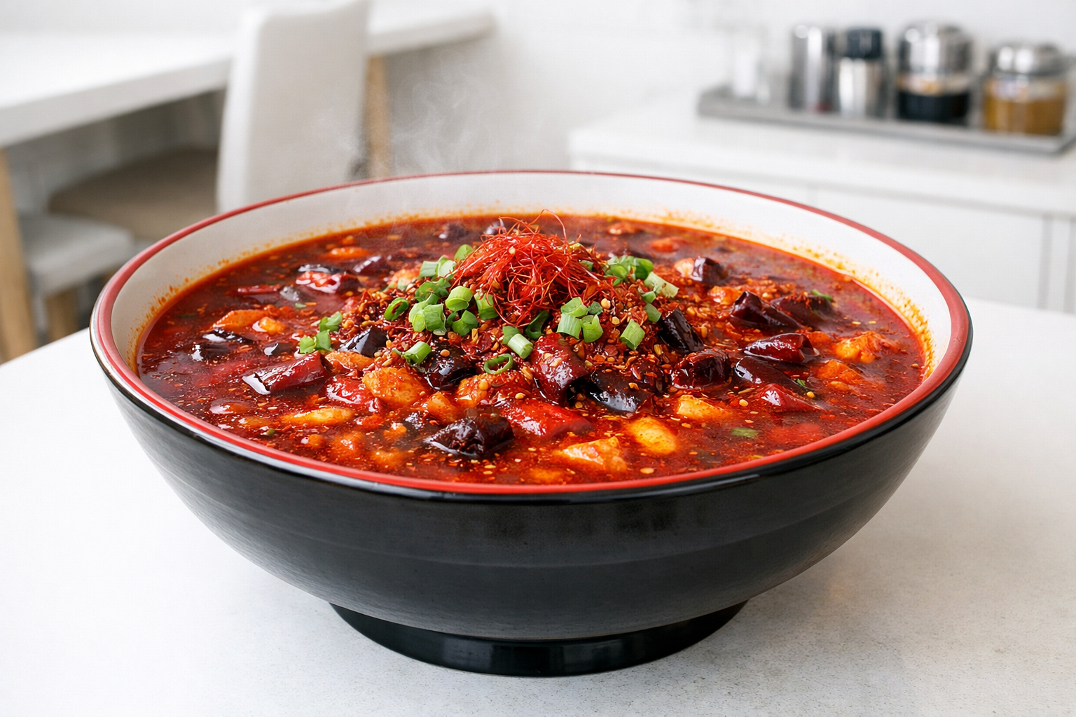 3番勝負の最後は激辛系の挑戦として、猪狩蒼弥と山本裕典がレッドサムゲタン鬼辛スープに挑みます。真っ赤なスープが特徴で、辛さの強さが前面に出たメニューです。量に加えて辛さへの耐久力が求められるため、単なる大食いとは違った厳しさがあります。スープ系のため一見食べやすそうに見えても、刺激が続く点が大きな壁になります。激辛チャレンジ ならではの過酷さが際立つ一戦です。