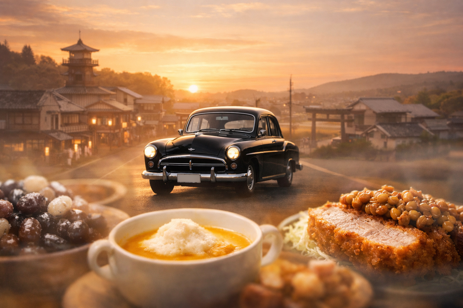 昼時に立ち寄ったのは、創業200年以上の酒蔵が営む 蔵+かつ。石岡の銘柄豚として知られる紫峰もち豚を使い、酒造りの技術で肉を熟成させる独自のとんかつが名物です。特に地元らしい“納豆ソース”は、豚の甘みと相性抜群。酒蔵ならではの深い旨みと、石岡らしい個性が合わさった一皿は、旅の印象をぐっと深めてくれます。