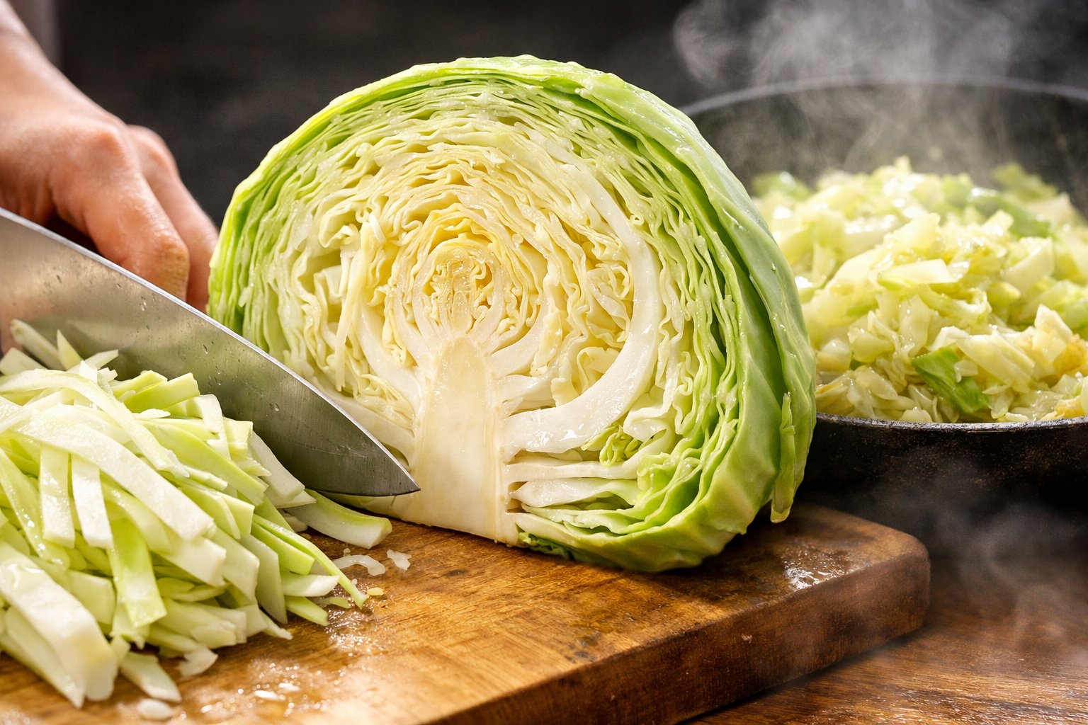 キャベツは火を通すとぐっと甘みが増します。ざく切りにしてフライパンでさっと蒸し焼きにする方法が紹介される予定で、油を使いすぎず、ふたをして短時間で仕上げるのがコツです。