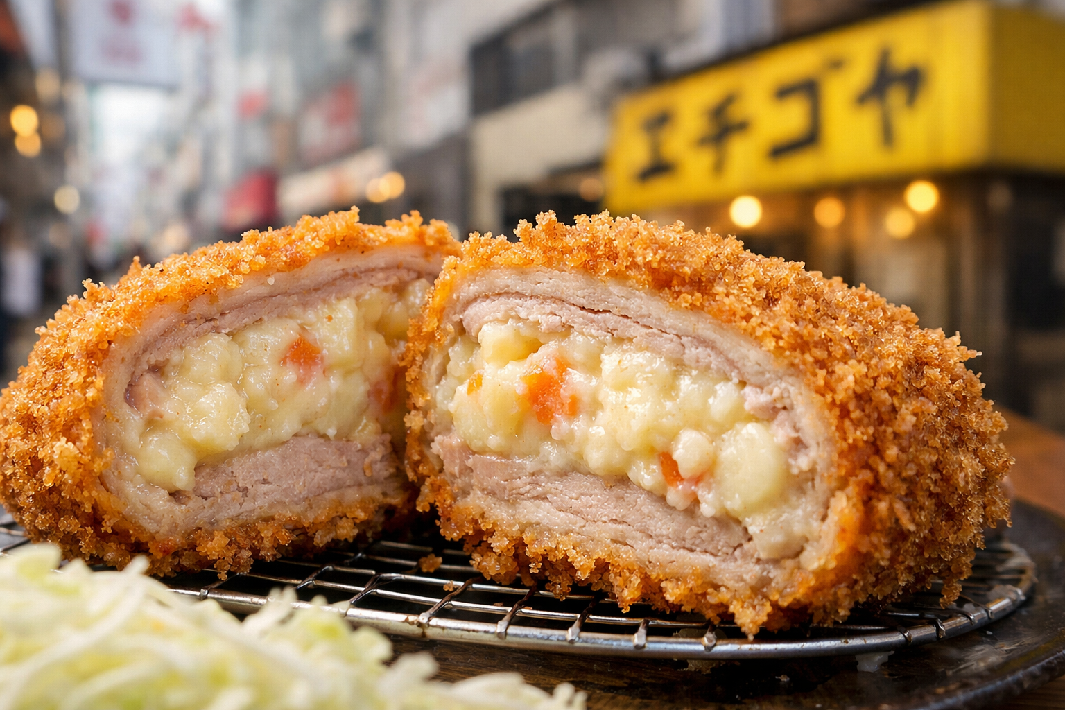 とんかつの中にポテトサラダを詰めるという発想は、一見すると意外です。しかしこの店では定番メニューとして長年提供されています。