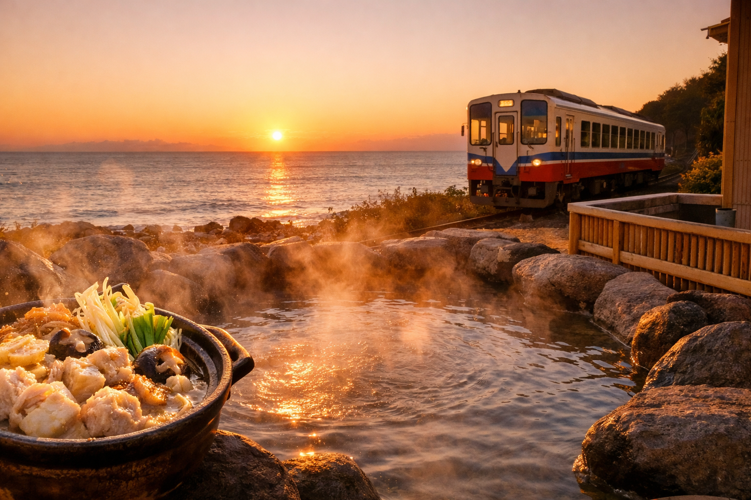 ひたちなか海浜鉄道で名物を探す旅の舞台は、海が広がる阿字ヶ浦。番組で立ち寄った阿字ヶ浦温泉 のぞみは、海を望む露天風呂と冬の味覚あんこう鍋が名物の人気施設です。ローカル線の終点で待つごほうびとは何なのか。温泉とグルメの魅力を紹介します。