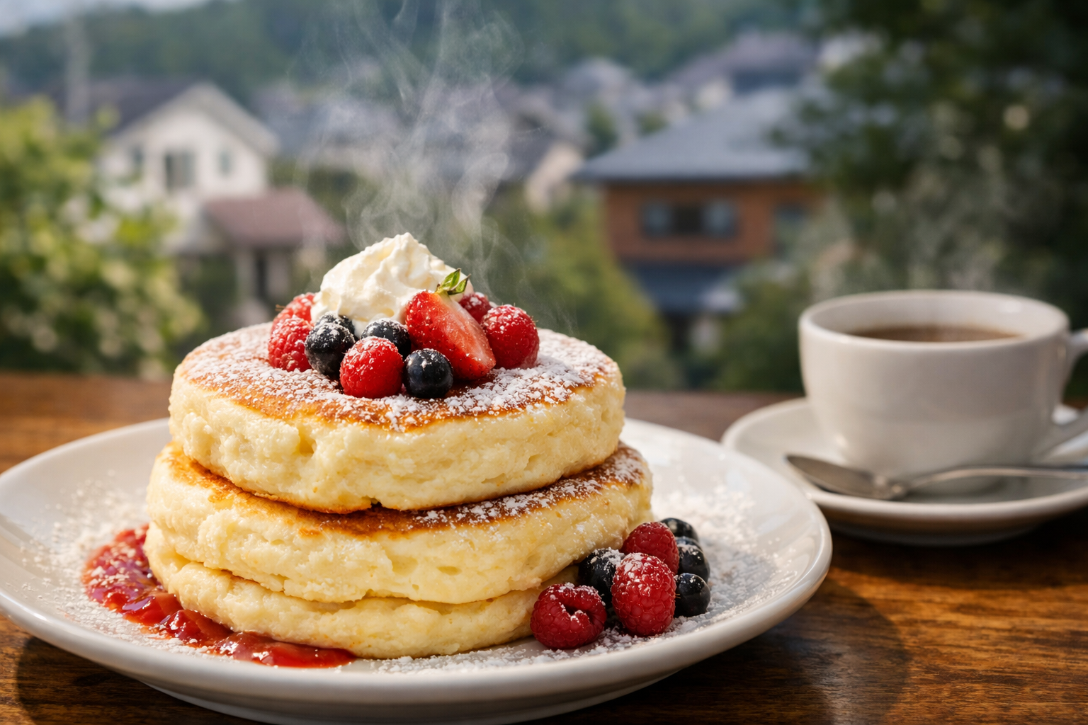 パンケーキを主役にしながらも、コーヒーの香りや味わいまで含めて一つの時間を楽しめる構成になっています。