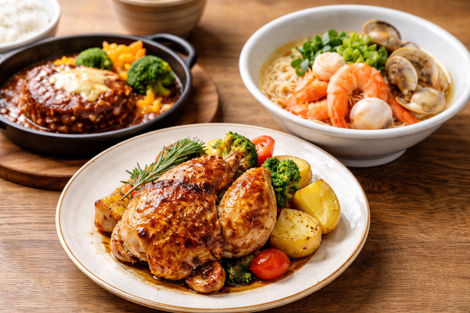 三重県菰野町は、御在所岳の麓に広がる自然ゆたかな町で、観光と一緒に楽しめる 菰野町ランチ が魅力です。今回登場したローストチキン、町民食堂の煮込みハンバーグ、海鮮たっぷりラーメンはどれも個性があり、旅の目的になる味ばかりです。山の景色とともに、温かいお店の空気も味わえる菰野の食めぐりを楽しんでください。放送内容と異なる場合がありますが、放送後に必要な箇所は追記します。