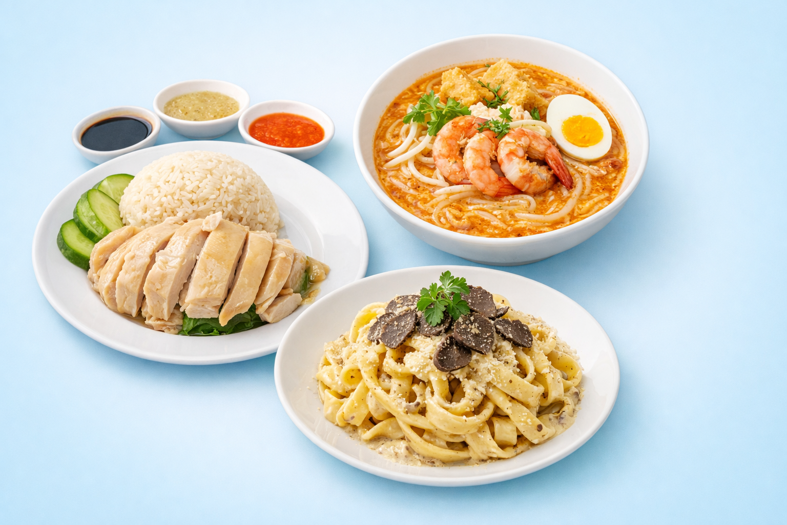 シンガポールのチキンライスは、鶏のゆで汁で炊いたご飯に、しっとりゆでた鶏肉をのせたシンプルな料理です。タレやチリソースで味の変化を楽しめるのも魅力。日本の「親子丼」や「カツ丼」のように、現地の人にとっては「ソウルフード」に近い存在です。